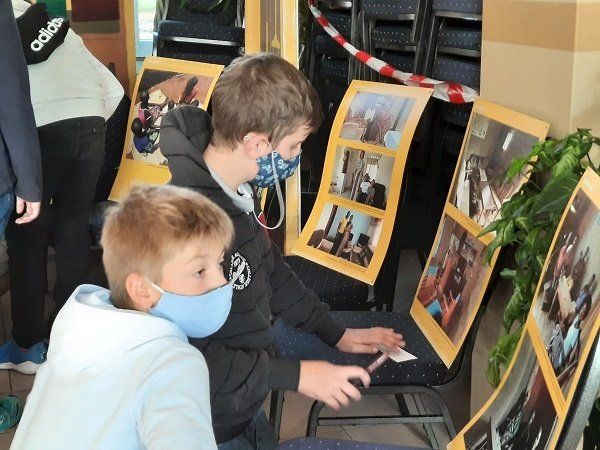 Nach dieser Schulung zur Ersten Hilfe vor Ort – in Thüringen – war für die Lernenden eine Bildausstellung zur Lebenswelt gleichaltriger Schüler in Zentralafrika, Ruanda und Uganda, vorbereitet. Zur Verfügung gestellt hat diese Ausstellung die Initiative Aktion Tagwerk. Diese startet jedes Jahr bundesweite Kampagnen, bei denen sich Schülerinnen und Schüler an einem Tag im Schuljahr aktiv für Gleichaltrige in Afrika einsetzen. Den Erlös ihres „Tagwerks“ spenden sie an Bildungsprojekte für Kinder und Jugendliche in verschiedenen afrikanischen Ländern und an Projekte für Geflüchtete in Deutschland. Zu den abgebildeten Plakaten lösten die Lernenden Quizfragen.